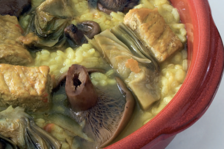 Arròs caldós amb faves i carxofes