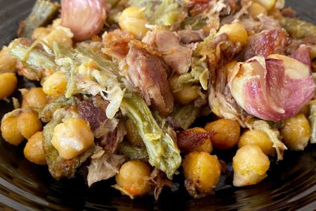 Quan ve l'hivern i sobretot la temporada de carxofes aquesta verdura s'utilitza molt per a fer guisats.