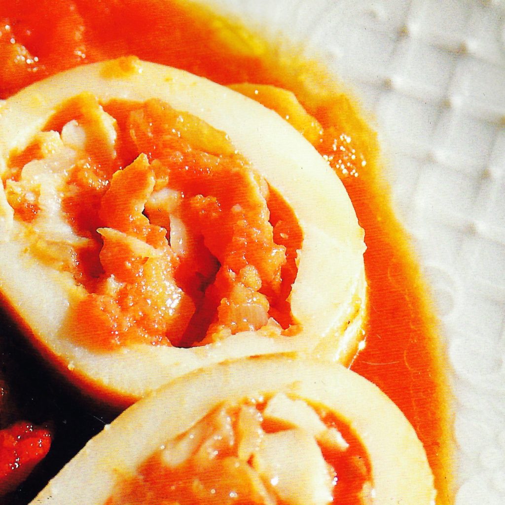- Per a servir-ho talleu el calamar a rodanxes i regueu-ho amb la salsa de tomaca.
