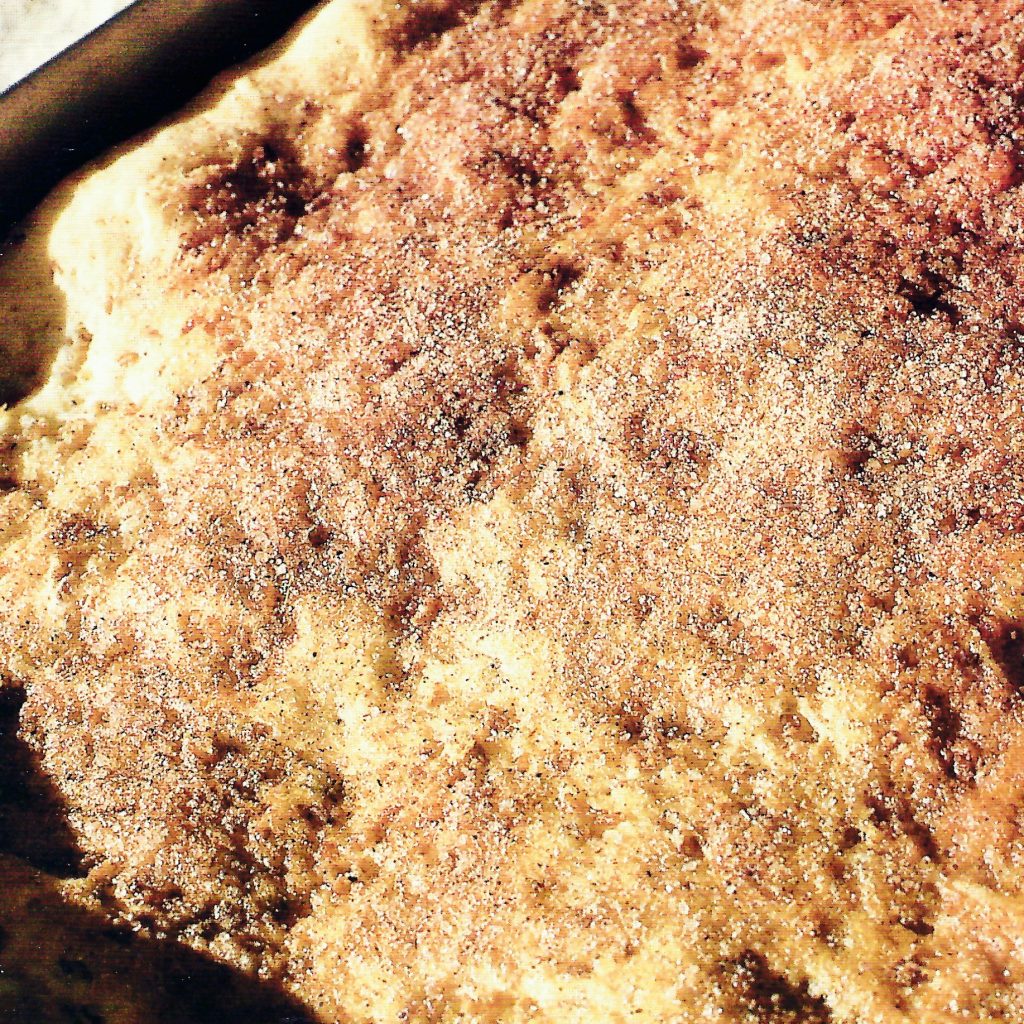 - Escampeu-ho en una llanda i per damunt, espolseu la canyella i el sucre mesclat.