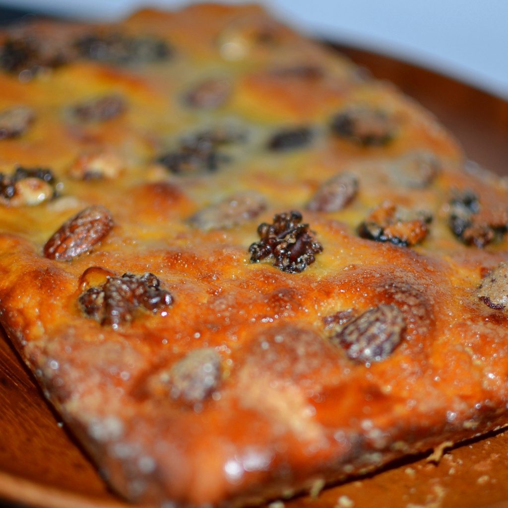 - Banyeu amb un pinzell la superfície de la fogassa i per damunt poseu el sucre.