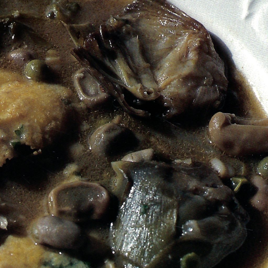 0/ 0 passos fets- Sofregiu els alls, les carxofes i l’encisam junt amb el pebre i la farina.